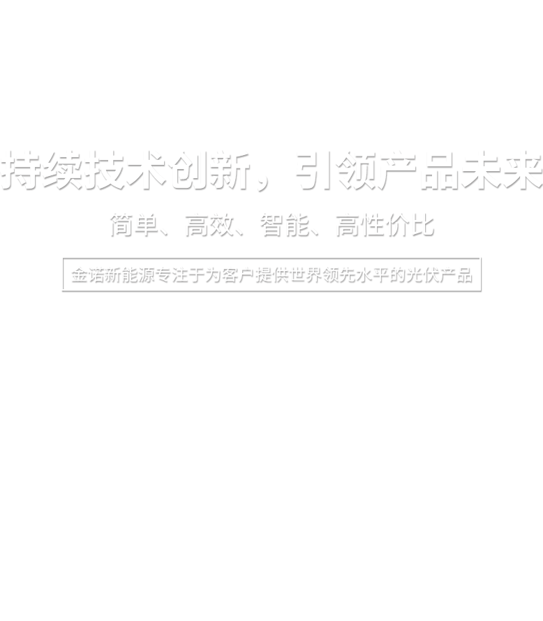 金諾新能源專(zhuān)注于為客戶提供世界領(lǐng)先水平的光伏產(chǎn)品,大力實(shí)施科技創(chuàng)新。我們秉持“品質(zhì)為先,服務(wù)全球”的理念,為客戶創(chuàng)造更高價(jià)值,并與您分享世界綠色能源在陽(yáng)光下的成長(zhǎng)喜悅!